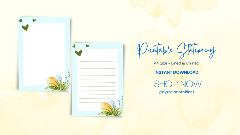 Embrace the spirit of Easter with grace and style. Purchase your "Light Blue Easter Printable Notes Template" today and spread joy with every word!